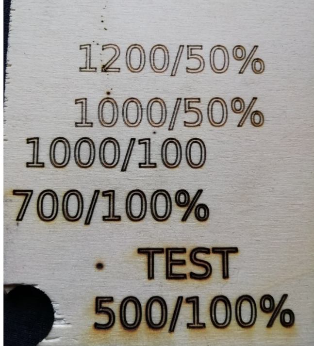 tady jsou různé rychlosti a výkony, mm/min a % výkonu. Záleží jak to chceš hluboko nebo jemně. to nejpomalejší na 100% je asi 1mm do hloubky. pokud zpomalím na 300-200mm/min už to hoří, pak je to očouzené. Někdo to přelepuje kvůli opalování, nebo ofukuje, ani jedno jsem nezkoušel. řeže to pěkně papír, čtvrtku nebo kartonové krabice. Mám i video asi 30MB nevím jak sem s tím..., sorry