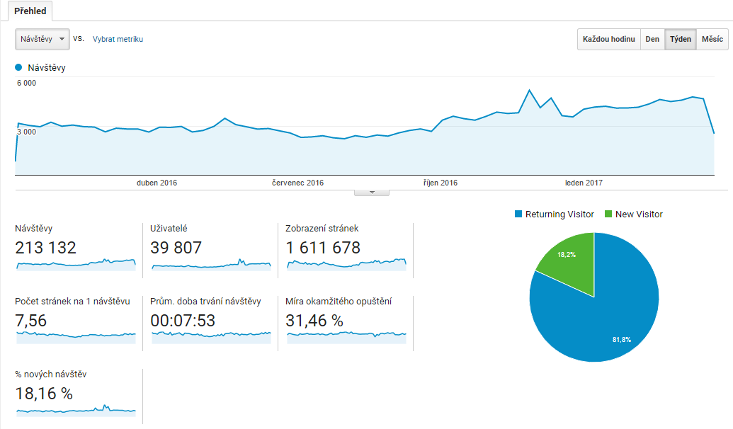 Tedy navstevnost ma neustale vzrustajici tendenci, tedy jen pro ilustraci navstevnost od ledna 2016: