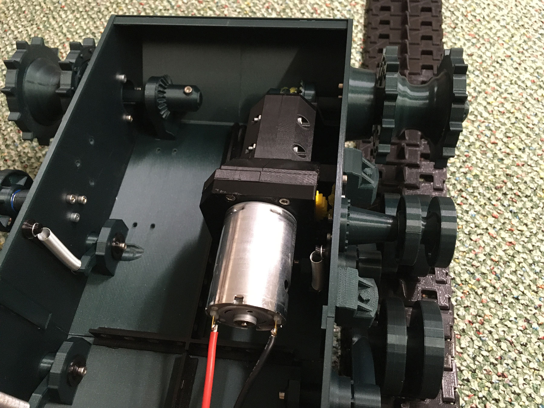 Vzadu se válí převodovka z Jeepa - trochu jsem ji přestavěl, díky Ondro za ni!