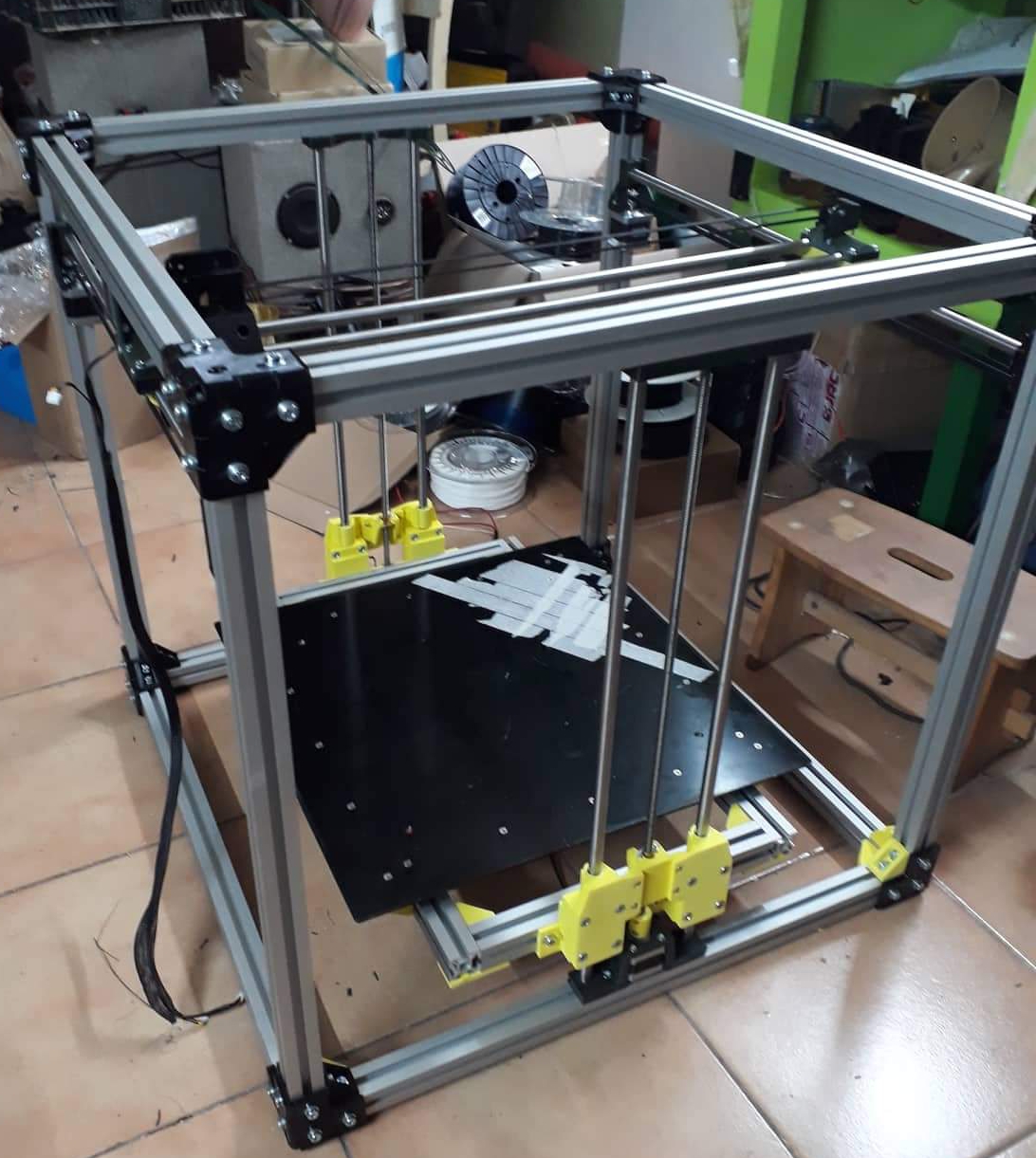 Včera sa mi to podarilo už aj rozhýbať dnes dúfam pustím tlač. Tlačová plocha je teraz 510x510 vošla by sa aj väčša. Výšku som ešte netestoval. Inak je ti na 12mm tyčiach s klznými púzdrami.