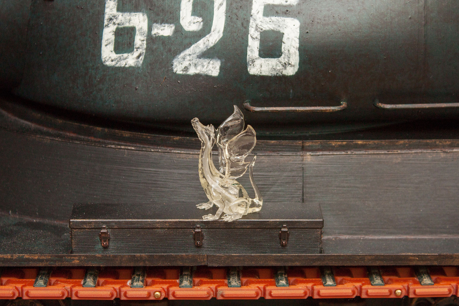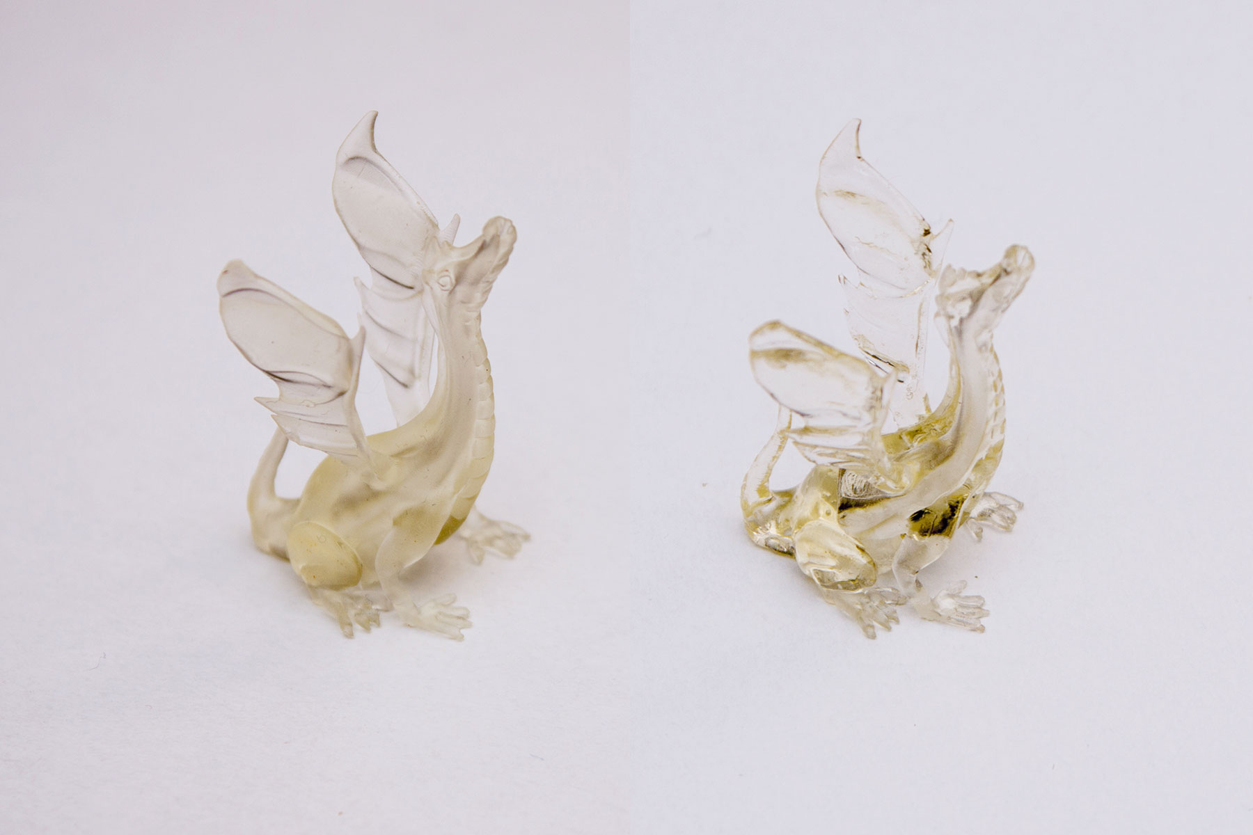 Výsledek zde, vlevo původní, vpravo natřený a vytvrzený lampou, výška dráčka ja 38 mm: