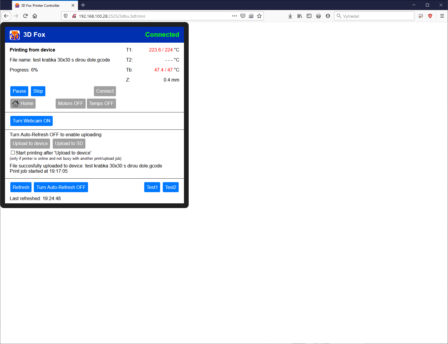 Rozhraní je takovej jednodušší strohej Octoprint, dá se tam zapnout webserver a pak teprve se to dá použivat na dálku.