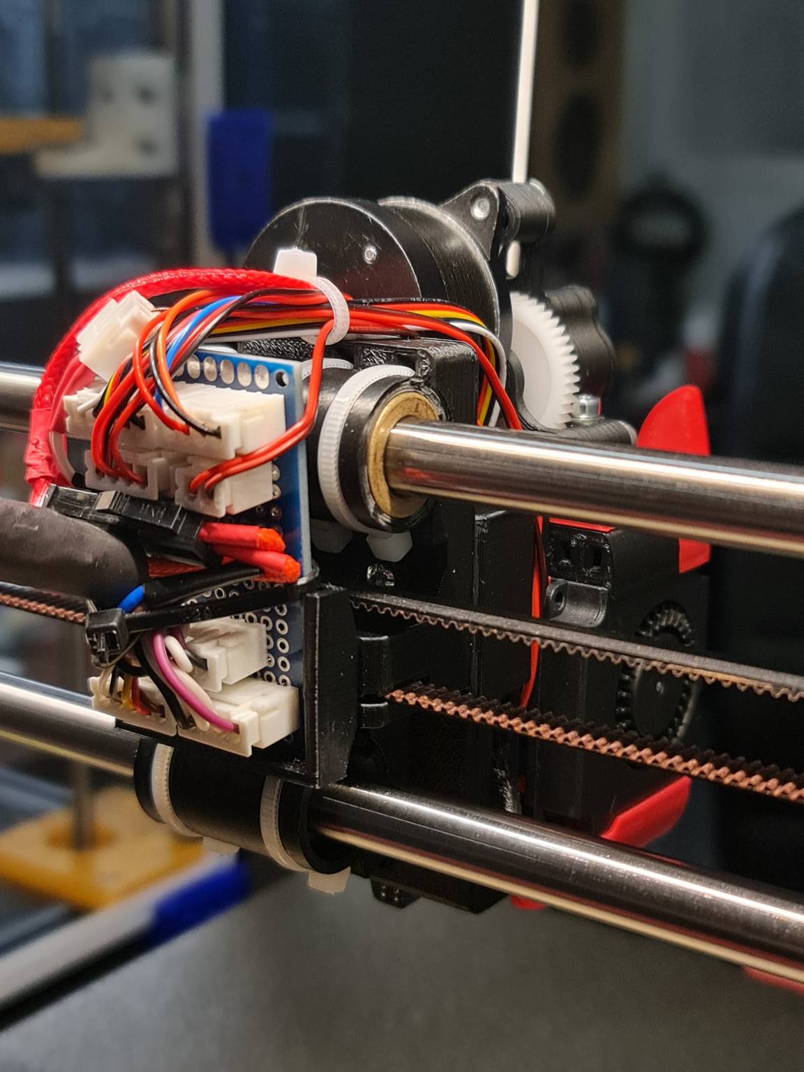 Pustil jsem se totiž do modernizace kostky, předělal prozatímně X na lineár s minimální úpravou a řeším, jak tam dostat voron stealtburner. A díky těmhle fotkám už vím jak upravím pohon X a současně Y taky na lineár.