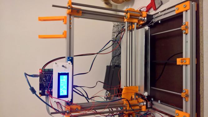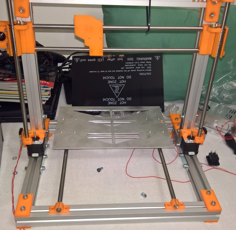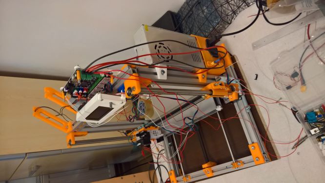 Deska je z Al jelikož kámoš dělá formy pro plastařinu lisy a tak to bylo pro mě nejjednodušší. Zkusím jak budu doma váhu desky. Zatím bojuji s konstrukcí nějak mám zkřížené vodící tyče v Z vzhledem k hornímu příčnému profilu Al. Tisknu nové pojezdy na Z menší vrstvou a budu ladit, taky můj úhelník měl něco za sebou