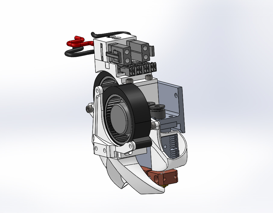 Chcel som vyrobiť niečo, čo bude zvládať 2 farby, neukúsne mi vela z pracovného priestoru, bude sa dať jednoducho meniť HE a nebude fúkať na podložku od chladiča.zatial mám osadenú len jednu hlavu lebo nemám dokončené heatbloky a aj tak mám len čierne filamenty