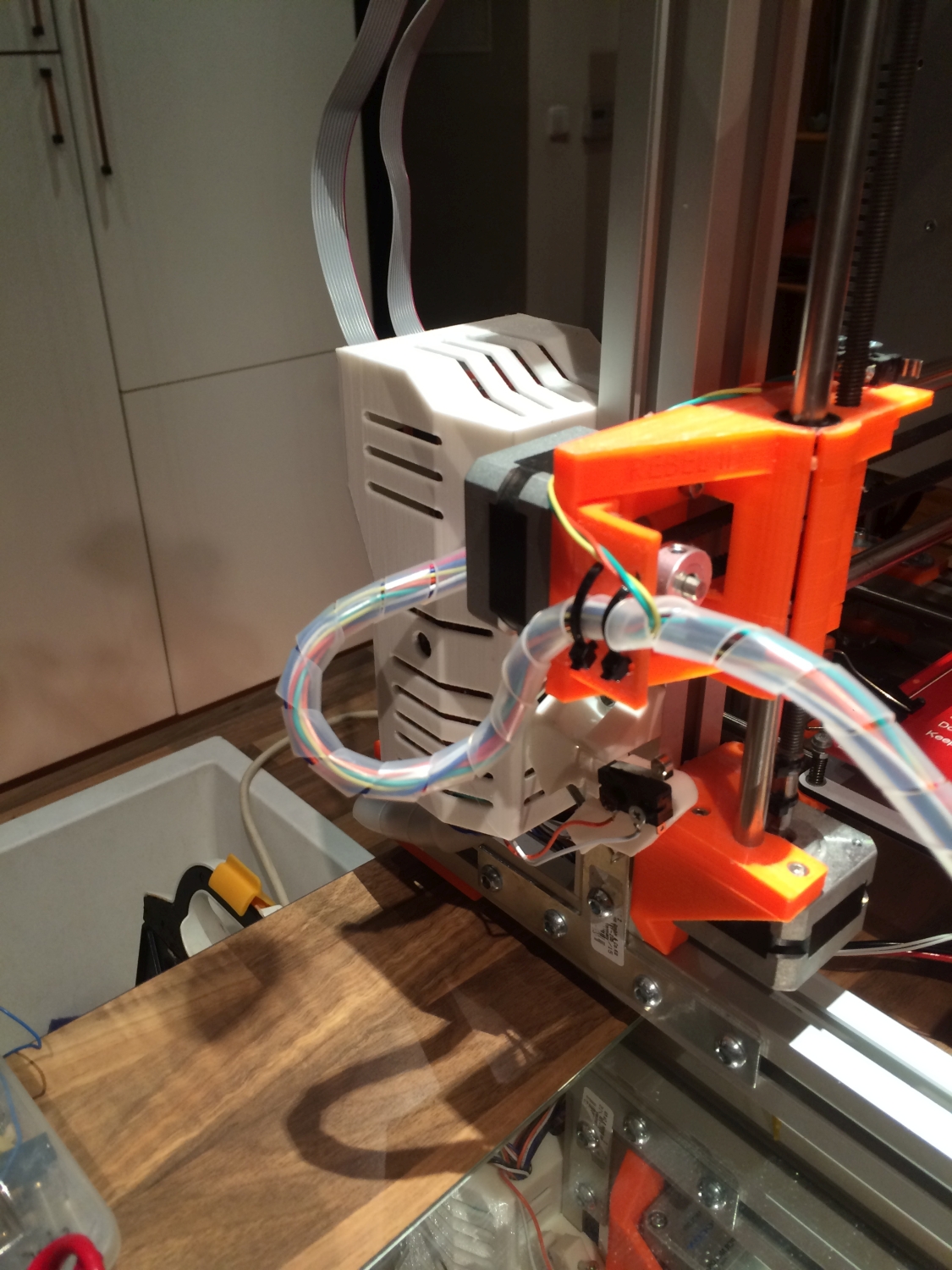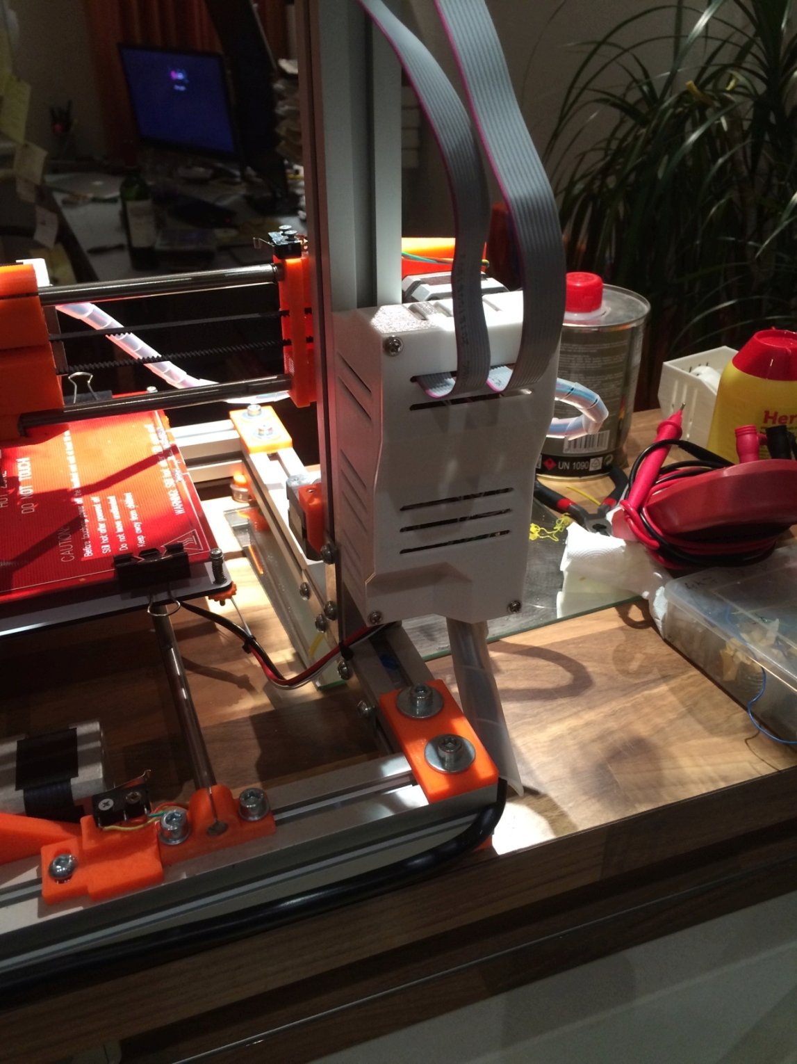 Při instalaci nejdříve protáhněte kabely od Hotendu do krabičky a teprve potom vložte Arduino.