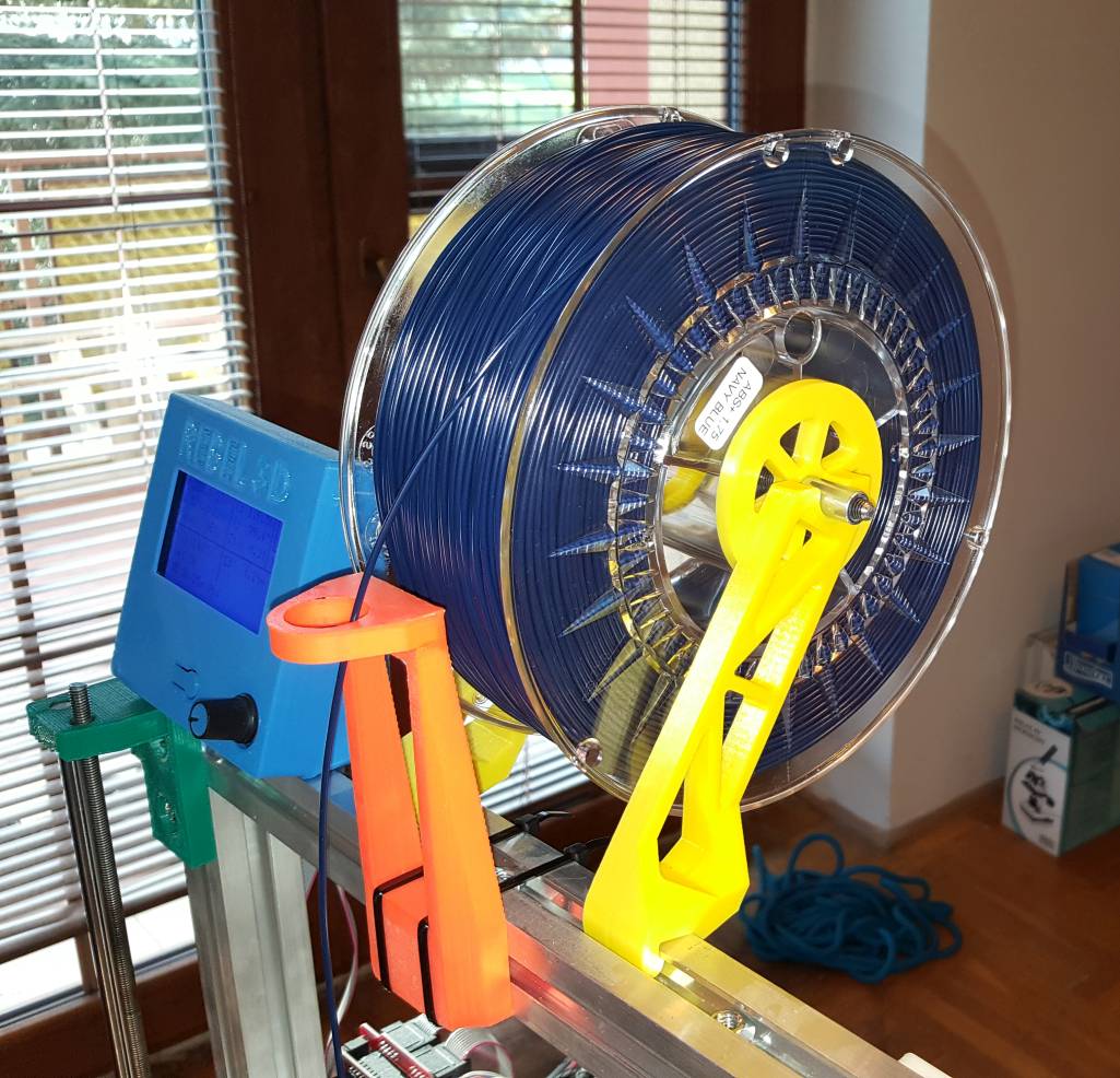 U nás (Olomouc) ve Ferocentru jsem objevil válcové matky M6, mají vnější průměr 10mm. A protože jsem si díky testům DevilDesign filamentu zrušil pár součástek Rebel II, musel jsem si vytisknout náhrady. Použil jsem držáky filamentu z sCube, které se samozřejmě hodí na jakýkoliv hliníkový profil, tedy i na Rebel II, akorát jsem upravil průměr zářezu na osu na 11mm. Dělal jsem to v Designspart Mechanical, docela slušně se vypořádal s převodem STL na těleso. Pomocí matek se snadno dotáhnou bočnice cívky, a krásně to prokluzuje. Jinak musím Dana pochválit, bezšroubové uchycení v profilu je fakt chytře vymyšlené, dá se to do profilu nasadit úplně bez násilí a přitom nehrozí, že by to vypadlo, a ještě se to dá bočně posouvat podle tloušťky cívky.