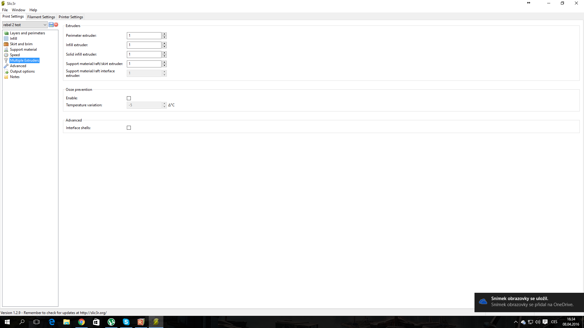 Ja z nej tisknu teprve tri dny a taky porad "experimentuju", myslim ze pouzit uplne moje nastaveni asi nebude nejlepsi napad :-), ale v kostce: