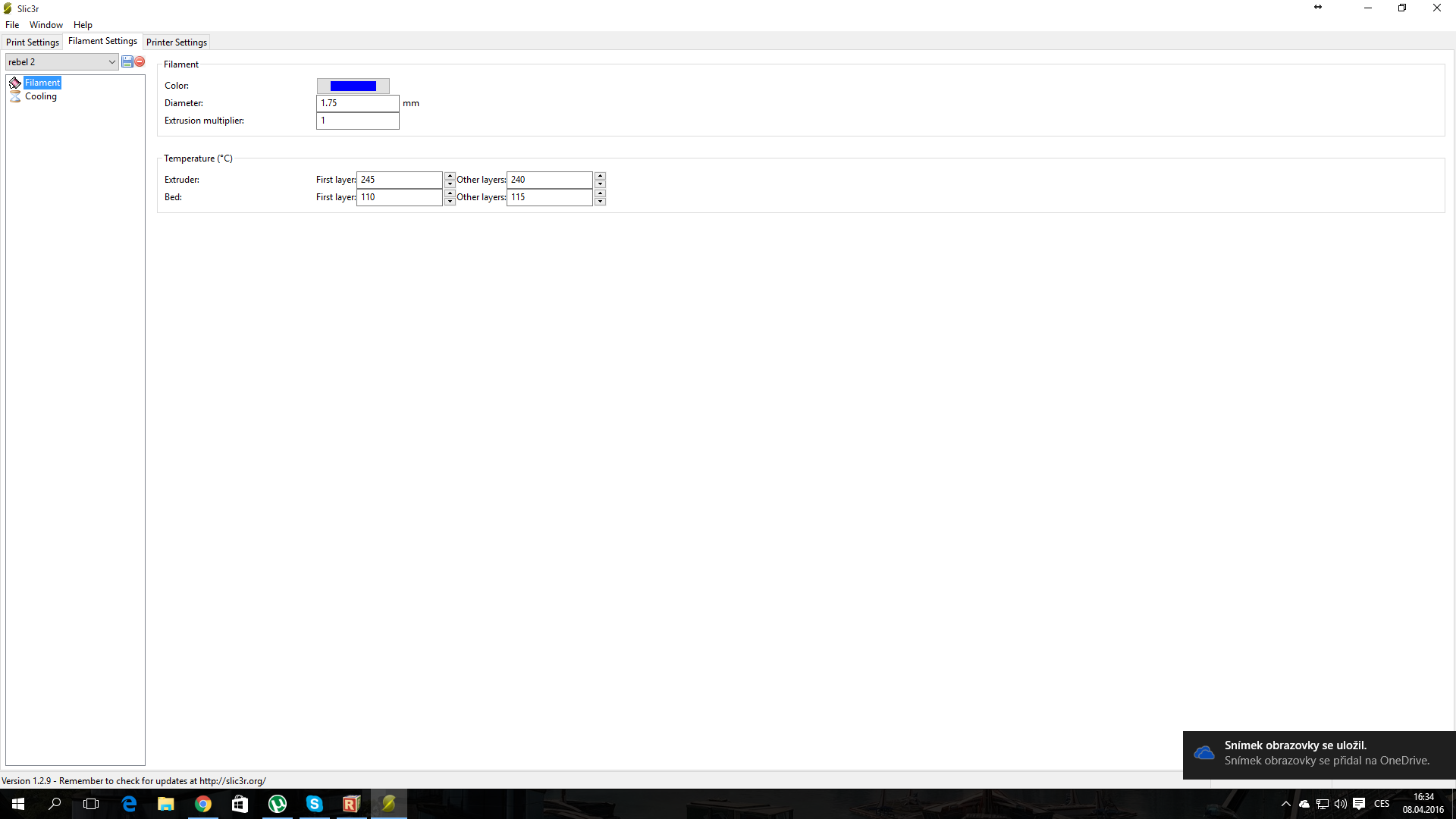 jj z toho materialu chci taky tisknout, dokonce podle testu to je pevnejsi nez cely abs, mam v planu ho od rebela koupit :-) jen tu mam jeste 2 kg abs tak neco s tim chci zkusit, pripadne hodis sem jake mas nastaveni na ten material? at nemusim experimentovat a rovnou nastavit slicr podle tebe? :-)
