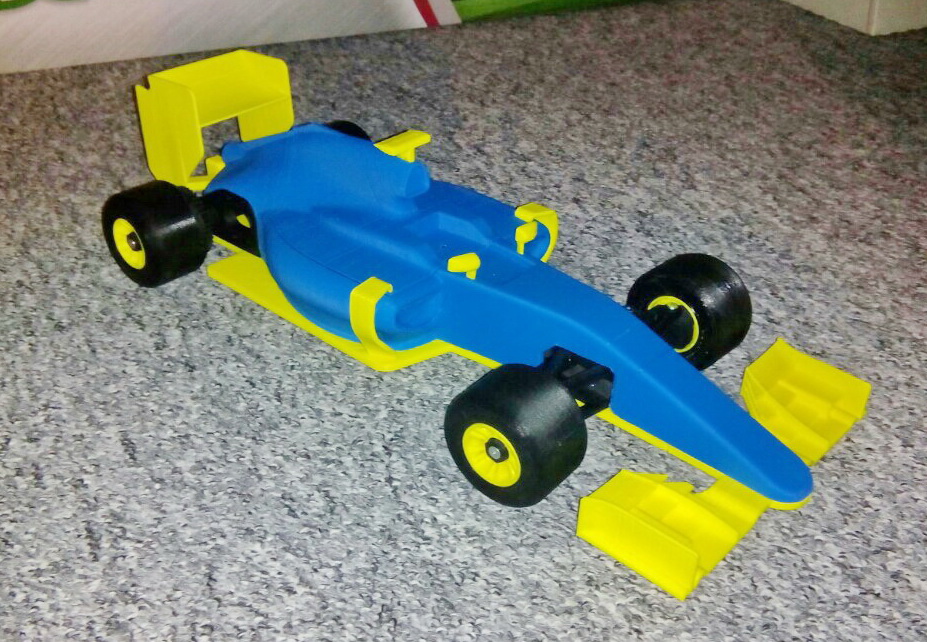 Tak jsem včera a dnes zkoušel jezdit s tištěnou formulí. A je to těžký zklamání, je tak do vitríny. Problém jsou gumy. Zkoušel jsem 3 různý typy. Na palubkách a dlaždičkách jsem měl gumy tištěný z mladečskýho TPE32 přetažený na radu Kroxigora páskama nastříhanejma z duše horskýho kola. Duše se dokáže natáhnout tak, že přesah je až k diskům, skoro to vypadá jako pravá slicka. Ale dost se to smeká a hrabe, na dříví to ještě jde, ale na dlaždičkách špatný, samej smyk.