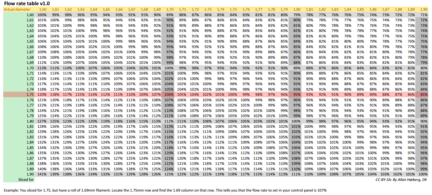 Nebo ještě jednodušeji používám u 3mm přibližně 7% na desetinu rozdílu. U 1,75mm je to větší rozdíl ale i tam mi většinou stači na desetině dát "baj voko" 12%.
