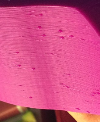 Dělá se to jen v zaoblených místech, že? Pak se jedná o hrudky vzniklé zastavováním tiskárny na krátké okamžiky. Když budeš pozorovat tiskárnu tak by sis v těchto místech měl všimnout chvilkového zadrhnutí. Je to způsobeno tím, že elektronika nestíhá v důsledku příliš detailního modelu. Jsou 4 možnosti jak to řešit: