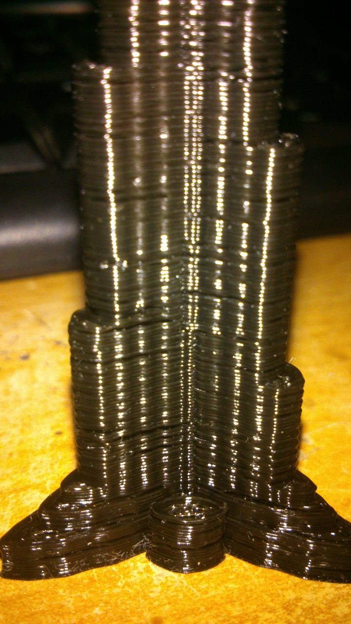 Fotka Burj Khalify v přiloze. Materiál PLA-D Mladeč. Ještě to není úplně ono, příjde mi, že občas chybí trošku materiálu, takže ještě se to asi malinko zasekává, ale není to nic hrozného. Každopádně s PLA se mi obecně pracuje o dost líp, víc mi sedí i vzhled, nevýhoda jsou ty problémy s celokovem a hlavně vyšší cena oproti ABS (příjde mi, že to nikdo neřeší, ale na metráž je toho na kilové cívce opravdu o dost méně oproti ABS).