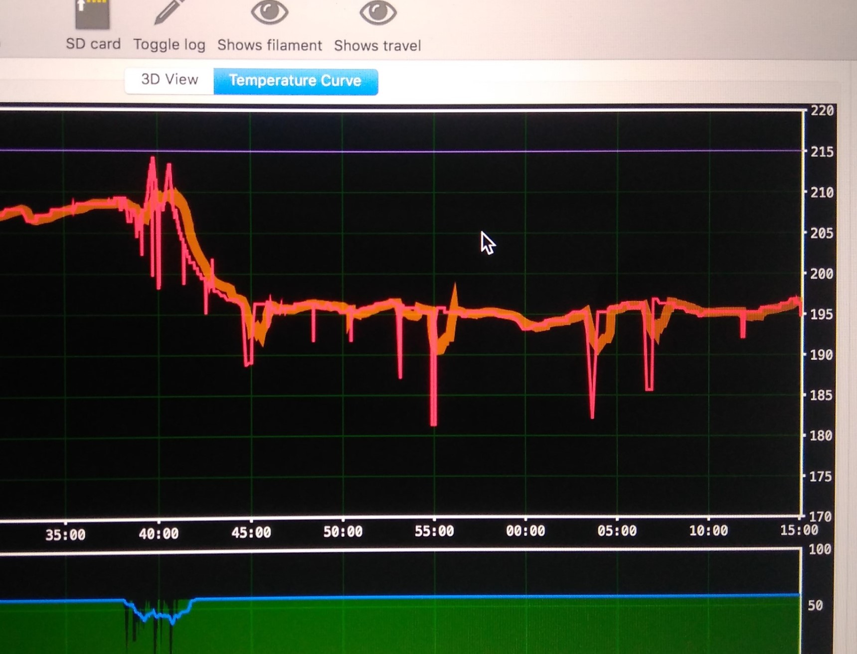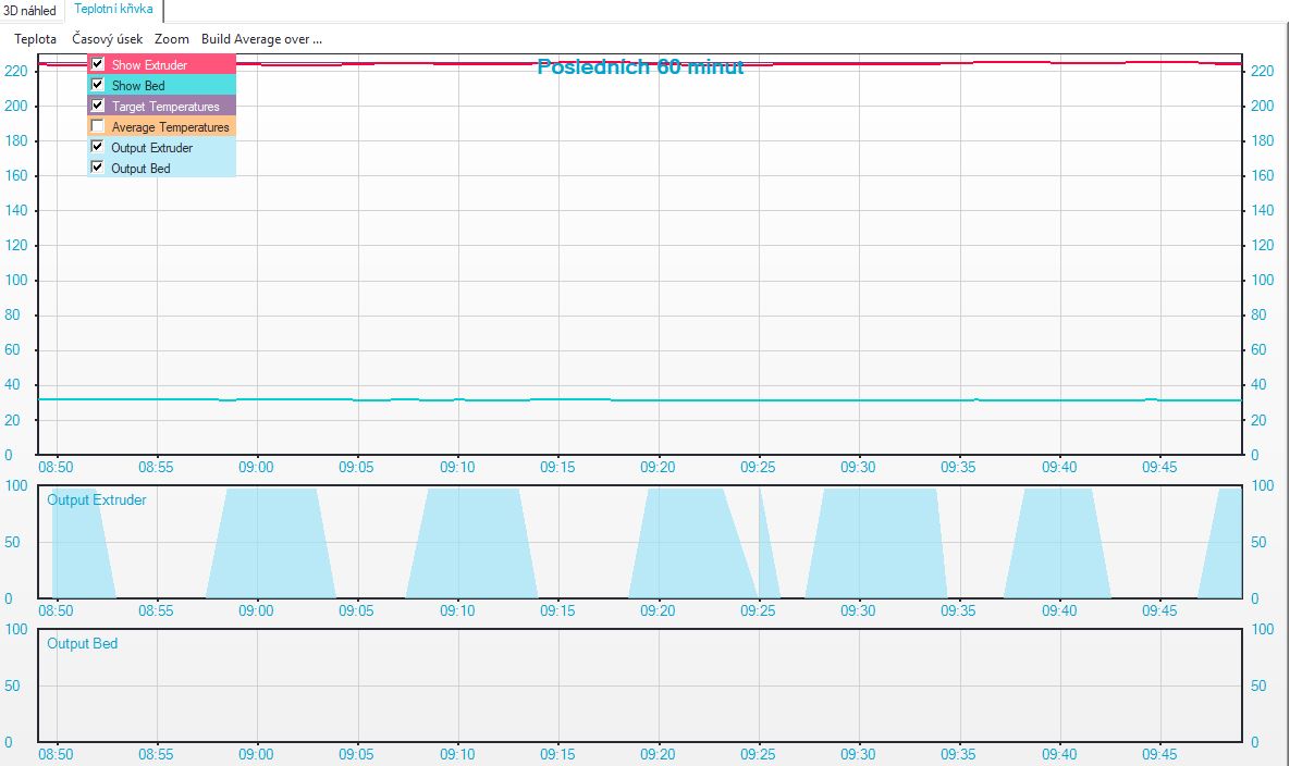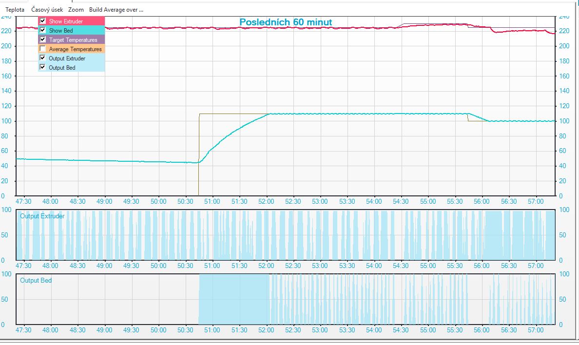 Ještě doplním graf teploty bez tisku teplota 220 a uplně vše v pohodě. Teplota drží....