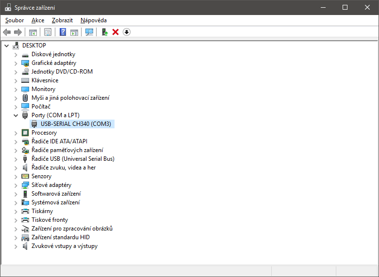 je třeba zvolit správný seriový port. Tedy pokud se ovladač nacpal ve vašem systému na port COM3
