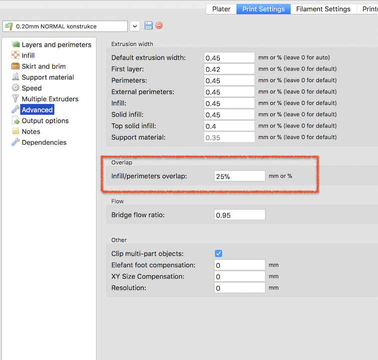Infill/perimeters overlap 25%