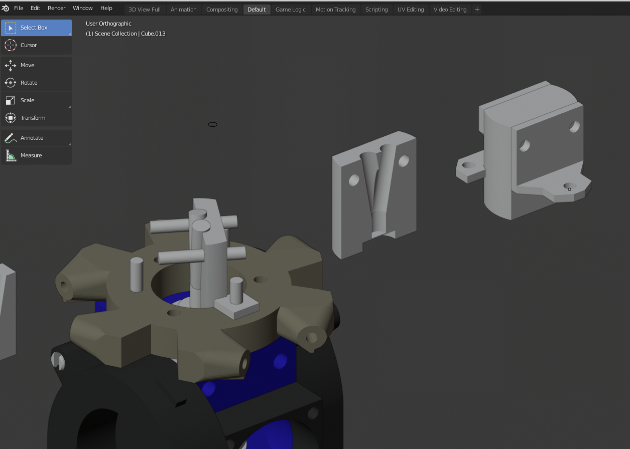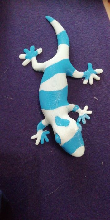 Bohužel při tisku to zvládne několik výměn, pak se to sekne. Problém je v tom, že při vysouvání se občas táhne za koncem filamentu (kde je trochu rozšířen tavením) struna plastu, a následně nový filament to ucpe.