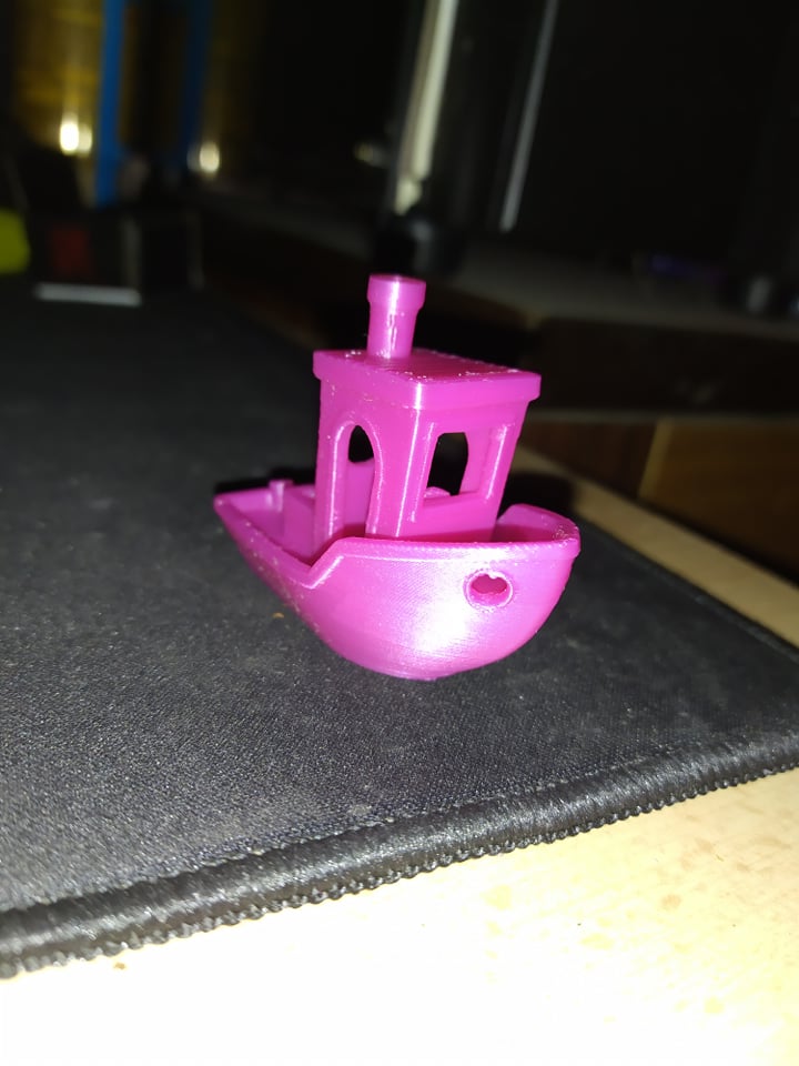 Tiskárna Corexy, samodomo. Byl tam zdroj 12V, deska SKM GEN L v1, drivery s drivery DRV8825. Vyměnil jsem to za zdroj 24V, SKR PRO V1.2, drivery TMC2209 v1.2 zapojené přes UART. Nechal jsem v desce pouze uart jumpery. Extruder BMG Dual zapojený na direct. Tudíž na mechanické části se vůbec nesahalo. Po výměně jsem nahrál Marlin 2. Změnil jsem u něho drivery, nastavil natvrdo 256 mikrokroků na všech driverech atd. a začalo to dělat artefakty, které jsou vidět dole. Ta fialová lodička je před změnou desky. Po změně desky a spuštění lodičky jsem pak ani nepokračoval v tisku, protože to nemá cenu, jak je vidět. Nemáte něko tip, čím to může být? Jestli to třeby nemůže být nastavením těch driverů, nějaké napětí a tak? Tady se přiznám, že nejsem úplně znalý, ale u té předchozí tiskárny jsem to ani nemusel řešit, tudíž jsem ztracený. A to jsem tam vlastně taky nahrával vlastní build marlinu. A jak to jelo...