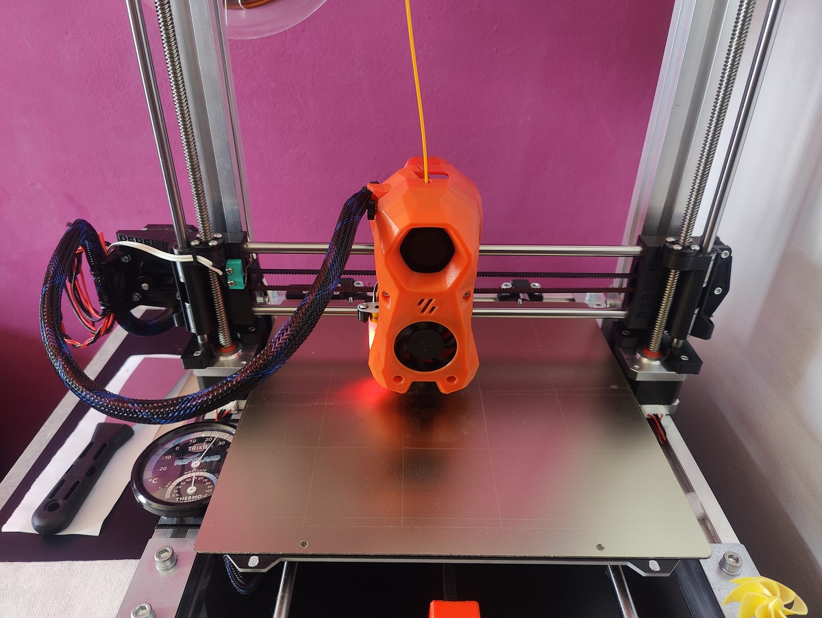 Celé to mám vytištěné z PETG a celkem žádnej problém. Jen cca 1mm se zdeformoval roh spodního dílu u heat bloku kde se kabely od topného tělíska ohýbají okolo toho dílu. Možná je to tím že mám malej hotend - Phaetus Dragonfly BMO, V6ku jsem nezkoušel. Jinak na SB tisknu pořád a celkem žádnej problém. Ofuk mě přijde hodně převymyšlenej ale dle reálných zkušeností to nepřináší až tak velkej benefit oproti rebelovskylýmu ofuku z R2ky. Jediný co mě štve je přívod kabeláže k extruderu, to by chtělo poladit aby to nevadilo klapce na uvolnění filamentu ale moje lenost je větší než to předělávat