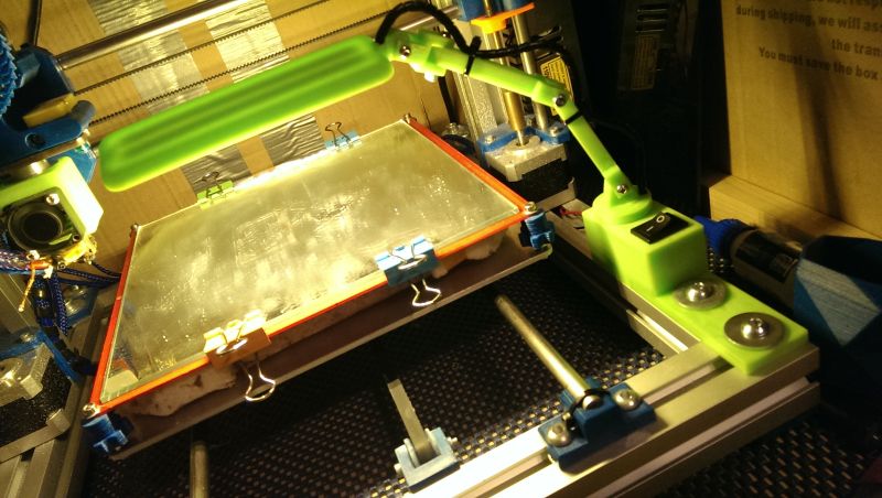 No já jsem tak dlouho spekuloval jak dát pásek abych dobře viděl na tisk, až jsem ho nalepil zespodu na držák hotendu a protože jsem moc líný, tak napájím přes původní větrákový výstup. Překvapilo mě jak těch pět ledek svítí