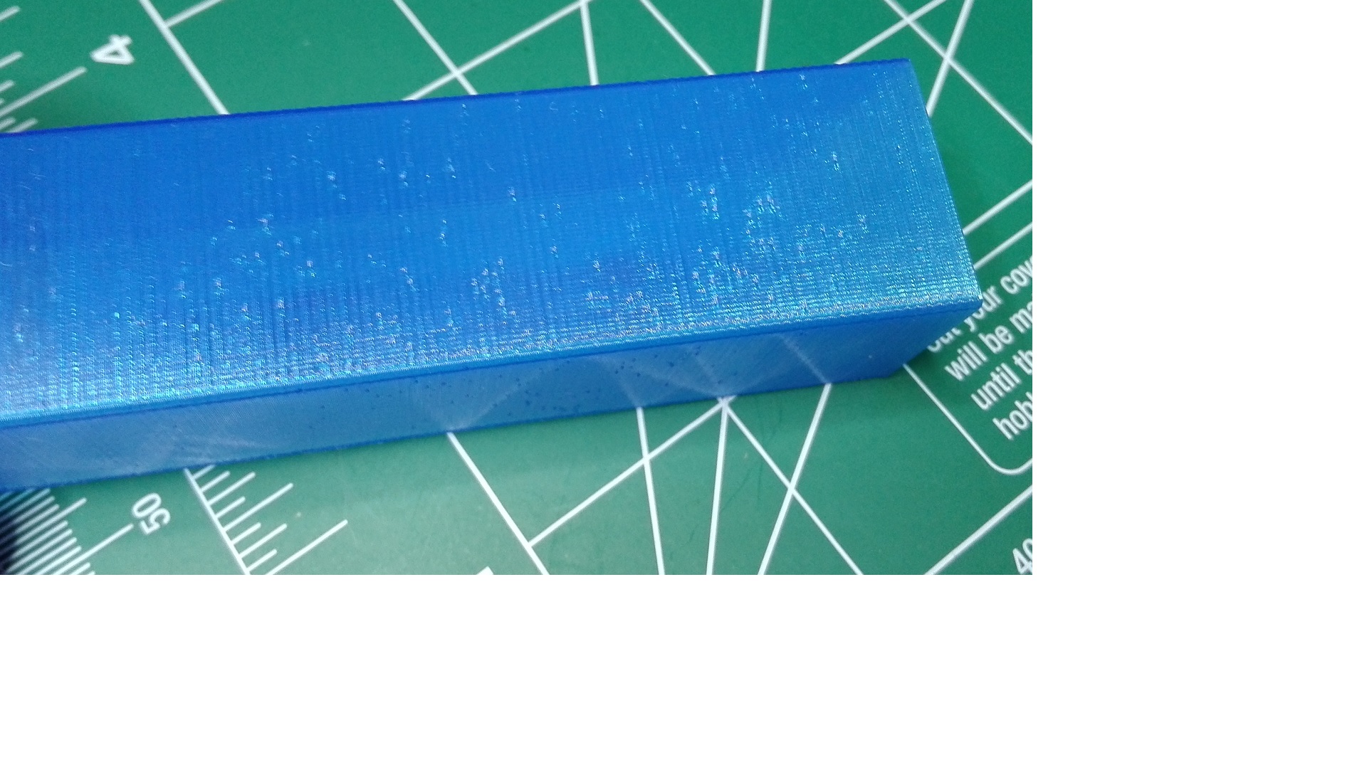Ahoj dik za ochotu je to PLA esun myslim, skusal som vytlacit taky testovaci hvadrik sirka steny je jeden perimeter vrstva 0,15 kazdy centimeter je teplota nizsia o 3 stupne od 210 po 186 stupnov prave som skusal ci zmena teploty bude mat nejaky vyrazny vplyv na vzhlad tlace jemu na tom videu je pekne vidno kedty trafil tu spravnu teplotu mne to robi tie prskance vo vsetkych teplotach prilozim aj gcode mozno to pomoze