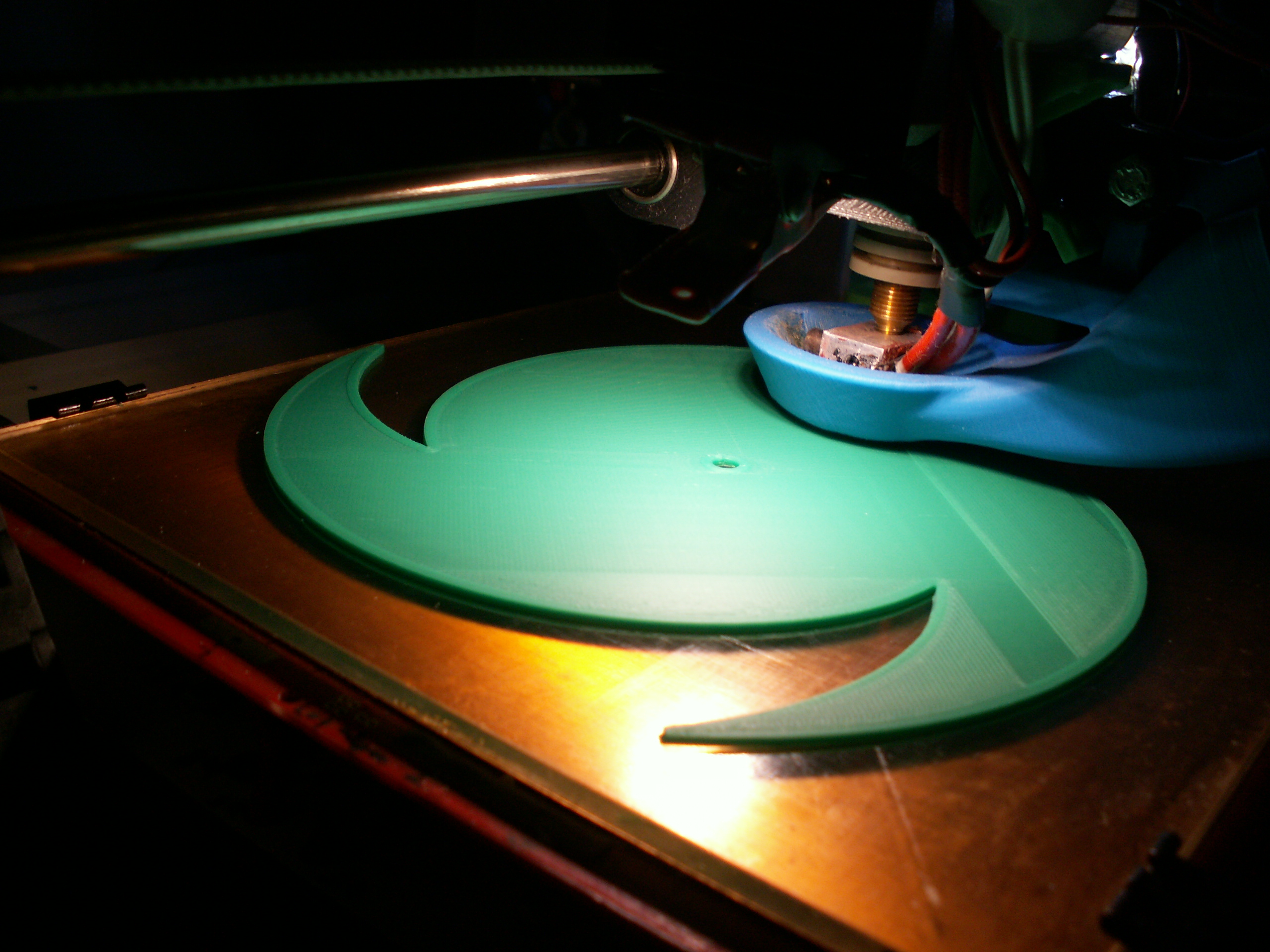 Topím to na 255°C, rychlost 50, bed 110°C a celokov (tryska .4 a vrstva .3 mm). Když jsem měl teplotu hotendu menší a rychlost 60, vlákna se vůbec nespojila, i malou silou to šlo rozlámat. Tak jsem rychlost snížil a teplotu zvýšil, ale není to stejně moc dobré, občas to prskne a stejně se mi to nezdá moc pěkně spojené do sebe jako v případě PLA.